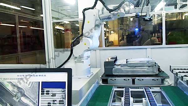 该方案针对自动流水线而设计,整个检测机台设计机械手拖动一个主相机,为1个检测工位,对检测工件的正面及周围四个面进行拍摄。然后把之前存入的模板调用后进行识别后对应机种取出,和当前的图像进行比对,由此来判断是否有错。如警报指示灯亮起将会及时停机处理不良产品或者进行分拣。